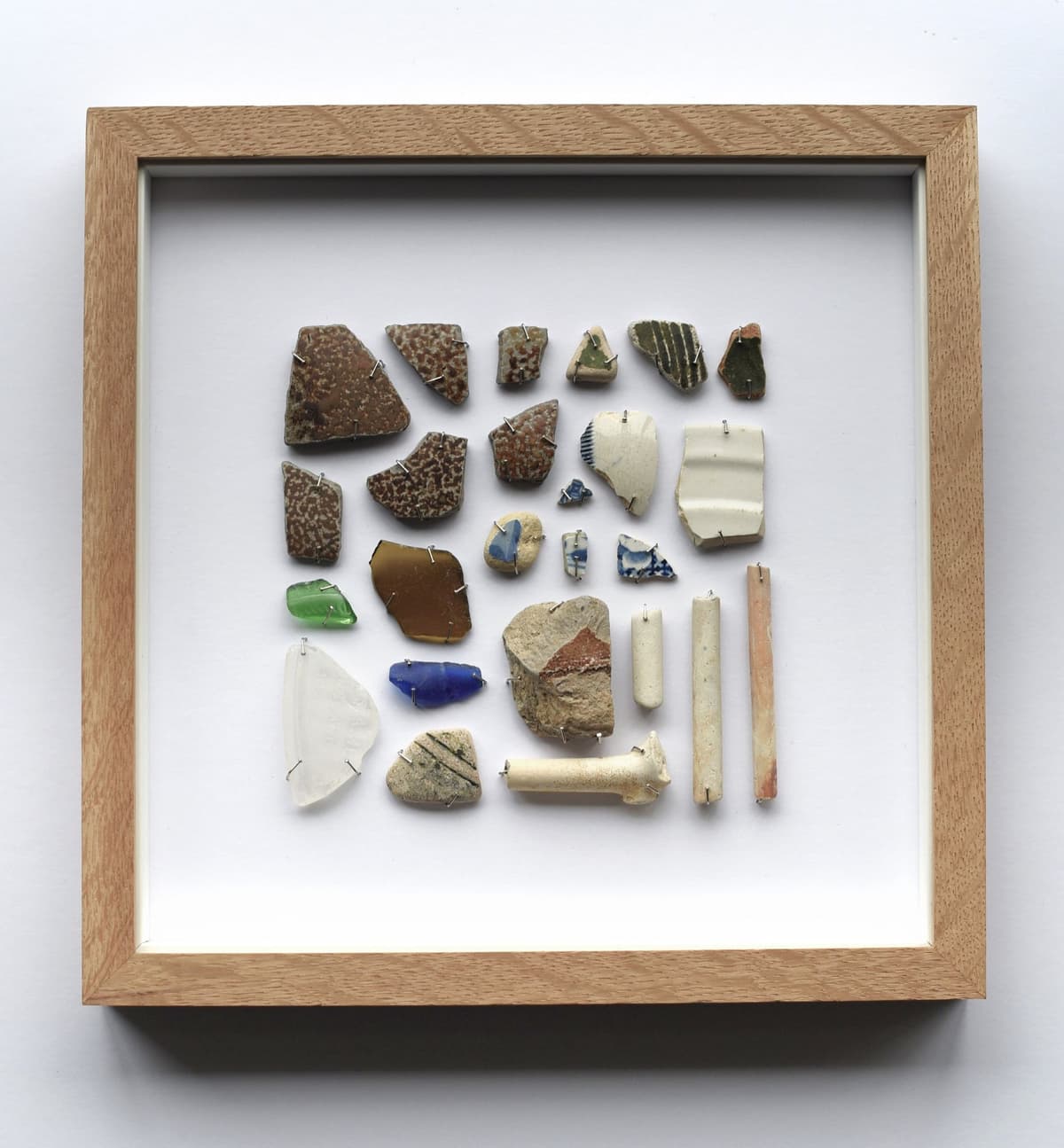 Mudlarking is the act of scavenging riverbanks, particularly the River Thames, for items of value. Here, each of my finds have been fixed in place using a similar approach to setting gemstones on jewellery. This is designed to encourage thoughts around the worth we give to certain objects over others.